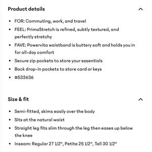 Perfect for work, travel, or athleisure. 27.5 inch inseam.