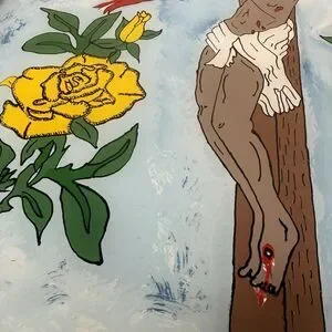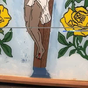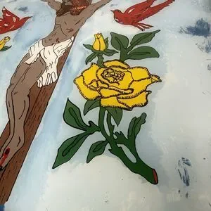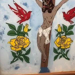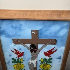 Vintage 1977 Attica Prison Inmate Folk Art Hand Painted Glass Jesus Crucifixion by inmate Flozell Hill Jr. Cephas Attica Lifers Group
