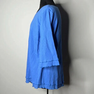 Soft Surroundings Women Gauzy Blue Tiered Blouse Size XL