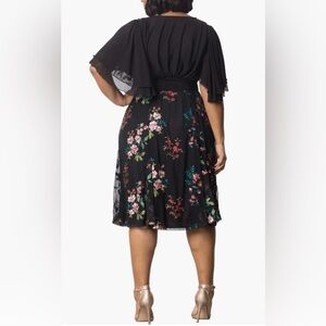Kiyonna Black Lillian Embroidered Flutter Sleeve Cocktail Dress NWOT Size 1X