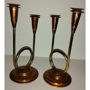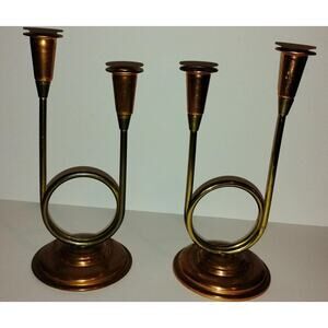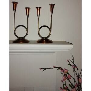 Copper Craft Guild Double Taper Candle Holders two-piece set approximately 10 in by 4 in 2.41 lb