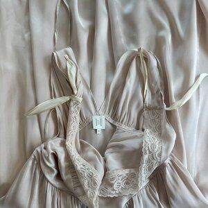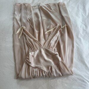 Helsa pink/beige maxi silk dress with cuet bowtie