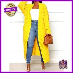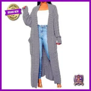 Chunky Cable Knit Cardigan with Pockets, Loose Fit, Ankle Length