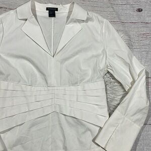 Natori white colored poplin pleated detail front pullover blouse. This top is in great used condition