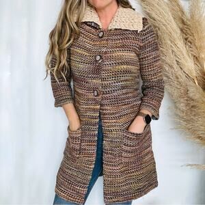 ANTHROPOLOGIE CHARLIE ROBIN Otono Beige Knit Button Duster Cardi Sweater Coat XS