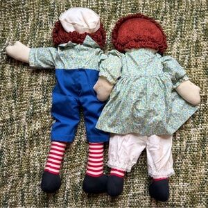 Raggedy Ann and Andy dolls are iconic American toys, first introduced in the early 20th century. Known for their embroidered faces and wool hair, these dolls are cherished for their nostalgic value and craftsmanship.