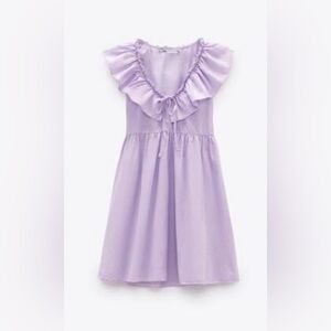 NEW Zara Pastel Lilac Purple Sleeveless Mini Dress Ruffles Tie Boho Cotton XL