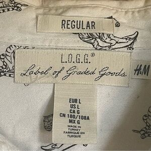 H&M Label of Graded Goods (LOGG) button down shirt with unique and fun tiger design. Features a classic collar, long sleeves and a chest pocket for convenience. Versatile for any occasion.