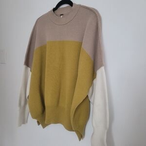 Free People Easy Street Colorblock Sweater Yellow Womens Size S Cotton Blend