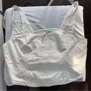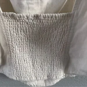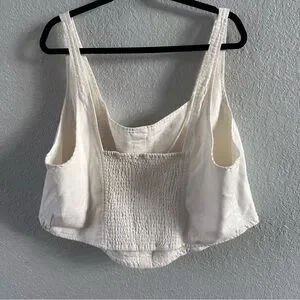 New with tags Pilcro by Anthropologie cropped corset-style tank top in a breathable cotton-linen blend. Features wide straps, structured seaming at the front, a stretchy smocked back for comfort, and a side zip closure. A versatile warm-weather piece that pairs easily with jeans, skirts, or linen pants.