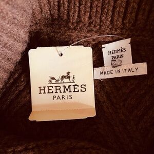 Hermes Elegant Tan Cowl Neck Sweater