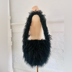 Dolls Kill Widow Faux Fur Bag Black Long Hair Furry Vegan Mongolian Lamb NWOT