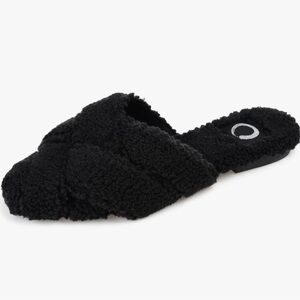 Journee Collection Sereena Black Fuzzy Slippers Sz 8