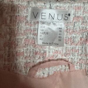 Venus Blush Pink Tweed Bouclé Coat Fringe Trim Long Jacket Size 12 Chic Classic