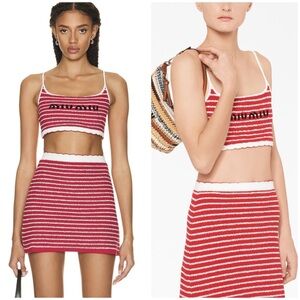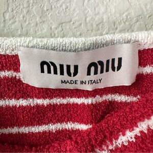 MIU MIU Logo-Embroidered Striped Cotton-Blend Top SZ IT 40/US 4