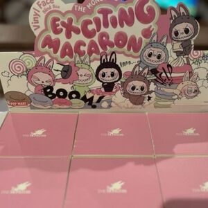These (6) Blind Boxes are from The Monsters Exciting Macaron Series. Made with original Vinyl Face and Blind Box packaging and playful designs. Features six different individual boxes and different surprise (and SOME SECRET) Characters! Fun for any age! Will you pick one of the Secret Labubus?