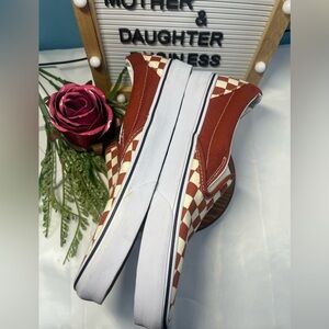 Vans Slip-On Checkerboard Rust Brown Canvas Shoes Mens 9 Like New