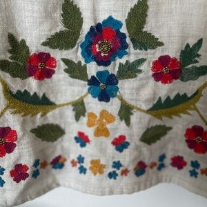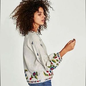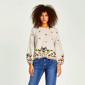 Stunning Zara Floral multicolored Embroidered Crewneck Puff Lantern Sleeve Blouse Top Medium EUC. So beautiful in person.