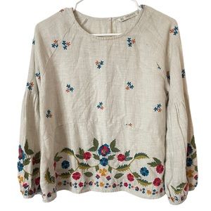 Zara Floral Embroidered Crewneck Puff Lantern Sleeve Blouse Top M
