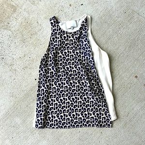 3.1 Phillip Lim Navy/Ivory Silk Chiffon Leopard Print Ruffled Tank Size 4