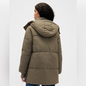 GAP Faux-Fur Trim Midi Puffer Jacket