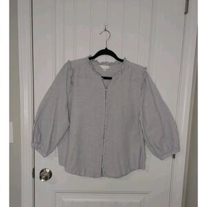 Lauren Conrad XL Puff Sleeve Picnic Prairie Top Cottagecore Boho Relaxed Fit Ruf