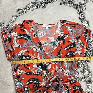 LOFT Dress Womens Sz 10 Red Floral Tropical Midi Button Front Tie Waist Vacation