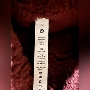 Lululemon Athletica women's maroon boucle fleece jacket. Zippered with two front pocket. Fully lined inside and super warm. Very heavy jacket. Size 12. Worn a few times and in excellent like new condition.
