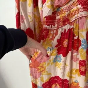 Bohme Floral Smocked Waist Boho Maxi Dress | V-Neck Romantic Print