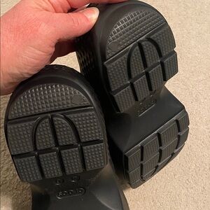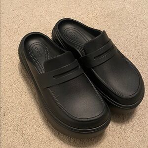 CROCS Black stomp lug sole penny loafer Clogs in size 6.
