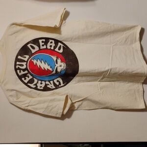 Classic Grateful Dead tee featuring iconic graphics on both sides. The front showcases the legendary Grateful Dead band name with the beloved dancing bears, while the back features the band name along with the skull logo. A must-have for any Deadhead or band tee collector.