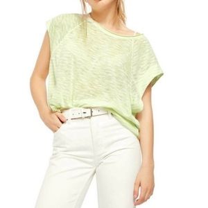 Free People We the Free Halo Stripe Tee-Shirt in Neon Lime and White Stripe. Retail $58.