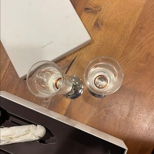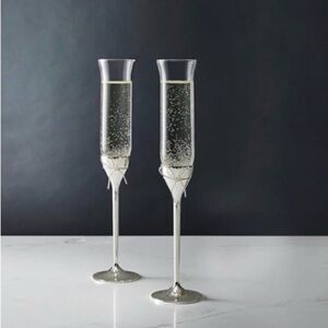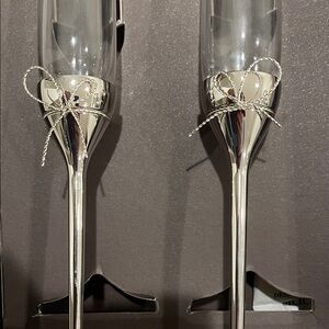 Set of two elegant silver champagne flutes. Perfect for celebrations. Used ones. All fine looking