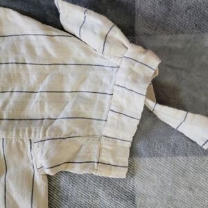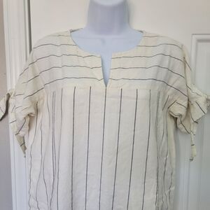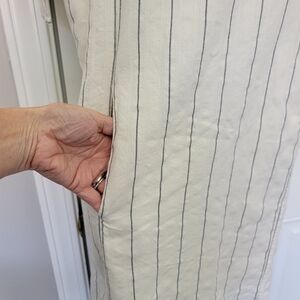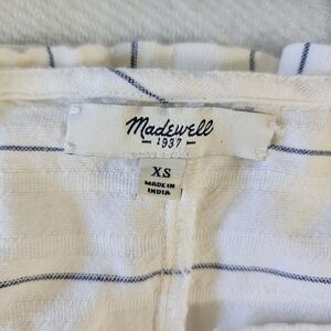 Madewell Linen Blend Striped Short Tie Sleeve Shift Dress Ivory Black Size XS