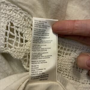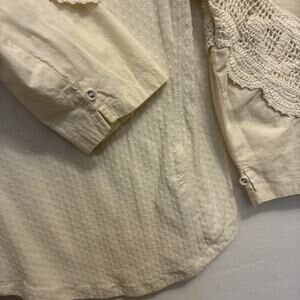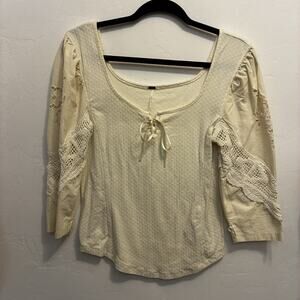 FREE PEOPLE Brunch Date Ivory Eyelet Lace Sleeve Blouse L Coquette Romantic Boho. Condition is Pre-owned - Excellent. Shipped with USPS Ground Advantage.