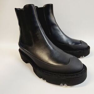 Aquatalia Holly Black Leather Lug Sole Emo Goth Combat Boot Dust Bag Size 8 NIB