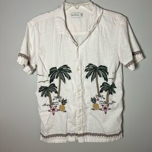 Abercrombie Kids Linen Palm Tree Button Down Shirt Vacation Beach Size 13/14