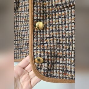 NWT, perfect condition! Chic brown tweed jacket with slight crop, functional gold buttons and chest pockets. Fully lined, slight puff detail at shoulder.