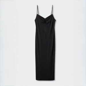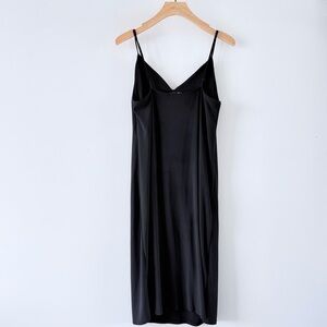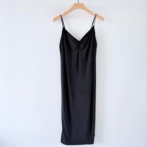 ZARA Black Slip Midi Dress Ruched Bust Adjustable Straps Minimalist Size L