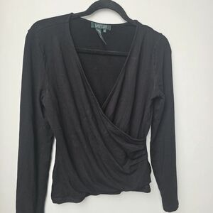 Elegant black wrap top by . Perfect for any occasion with its sleek design and comfortable fit.