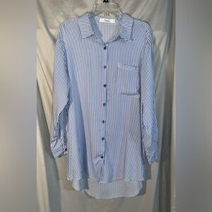 Solitaire Women's Blue and White Striped Button-Down Shirt