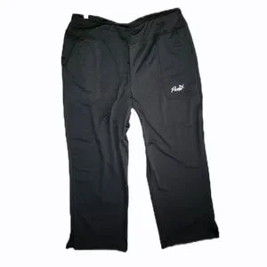 women's pants / plus size / black wide legged track pants with pockets / has white cursive logo on left thigh / size XXL / very roomy comfortable everyday casual pants / new with tags condition
