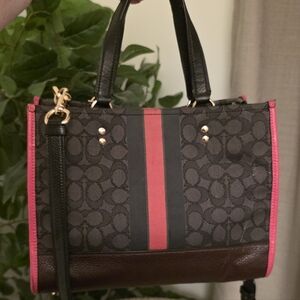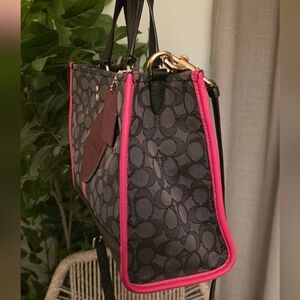 Coach Dempsey Carryall 4113 Signature C with Pink and Maroon Accents