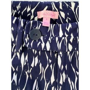 Lilly Pulitzer women’s pants in size 2, featuring a navy blue abstract print.