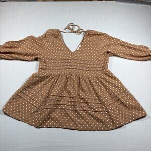 Entro Polka Dot Mini Dress Women’s M Boho V-Neck Tie Back Peasant 3/4 Sleeve
