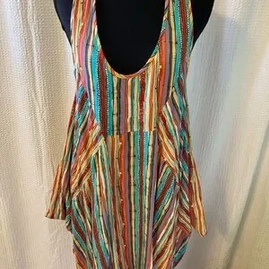 Add a burst of color to your wardrobe with this vibrant striped tunic. Perfect for casual outings, it offers a relaxed fit and eye-catching design.