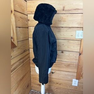 Vintage Y2K Black Faux Fur Hood Jacket Reversible Women’s Small McBling Mobwife