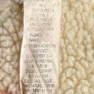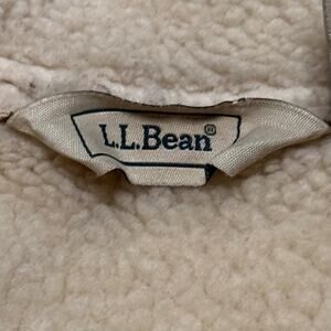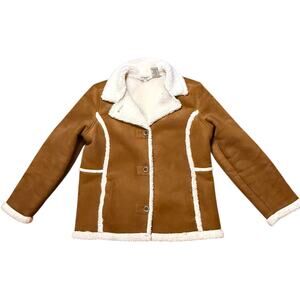VTG L.L.Bean Faux Suede Shearling Jacket Womens Brown White Button Up Size L