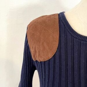 Lauren Ralph Lauren Navy Blue Ribbed Sweater with Faux Suede Patch Medium