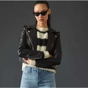 Anthropologie Avec Les Filles Faux Leather Jacket Black Size XS